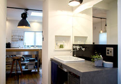 階段はメンズライクなアイアンを施したインダストリアル仕上げに。